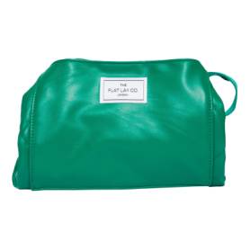 The Flat Lay Co. Open Flat Makeup Bag in Bottle Green Leather Monochrome